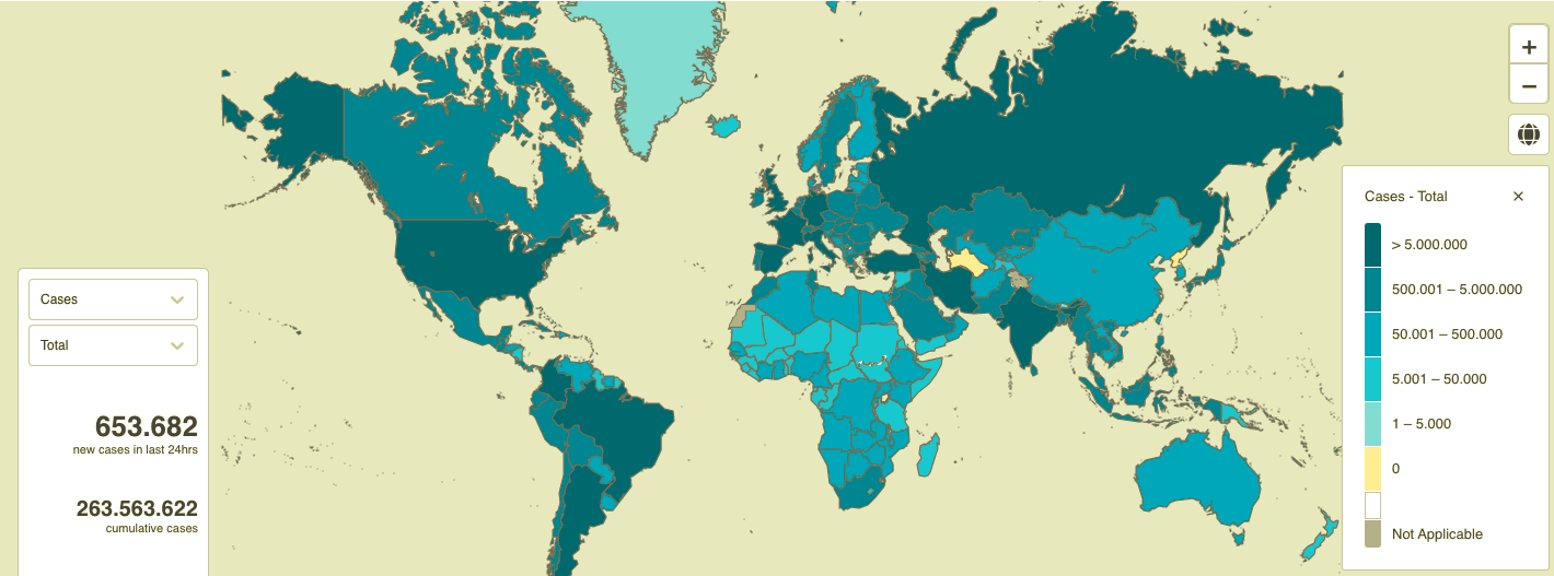 Das Thema Corona wird die Welt auch 2022 bewegen. Wird in eine Pandemie hineingeimpft, werden Mutationen ausgelöst. Derzeit belastet die Corona-Mutante Omikron. Saisonal ergeben sich in den kalten Jahreszeiten verschärfte Infektionsszenarien, die sich durch Gegenmaßnahmen und dem jahreszeitlichen Wechsel abschwächen werden. Mutationen schwächen sich in ihrer Gefährlichkeit im Zeitverlauf grundsätzlich ab. Ausnahmen bestätigen die Regel. Entsprechend ist verantwortliches Handeln gefragt. Pandemien sind nachweislich endliche Herausforderungen. Per 1. Dezember 2021 ergab sich global laut WHO folgendes Bild: